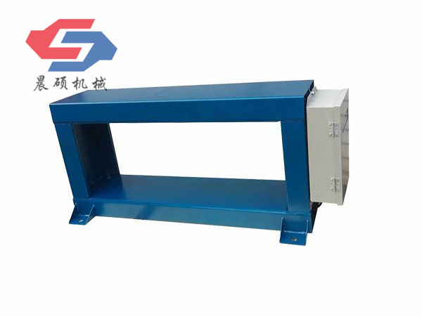 電磁除鐵器的基礎上增加了驅動電機、滾筒、帶刮板的缷鐵膠帶等組成的缷鐵機構。在工作過程